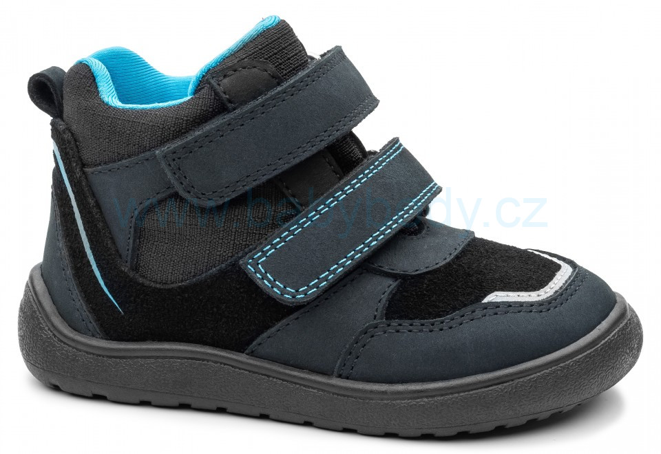 Chlapecké celoroční barefoot boty spojují moderní design s funkčností, takže je snadno sladíte s různými outfity. Membrána PROTEX účinně chrání nohy před deštěm a vlhkostí, což z nich činí ideální obuv do podzimního počasí. Svršek je vyroben v kombinaci broušené a přírodní kůže a textilu v černé barvě. Vnitřní podšívka v tyrkysovém odstínu dodává botám svěží kontrastní detail. Dvojité zapínání na suchý zip umožňuje snadné obouvání a pevně fixuje obuv na noze. Uvnitř se nachází netvarovaná, vyjímatelná kožená stélka. Kulatá podešev s jemným protiskluzovým vzorem je odolná a zároveň velmi flexibilní.• Špička je dostatečně prostorná i pro širší chodidlo • Rovná podešev je maximálně ohebná a má nulový drop – pro přirozený pocit chůze „jako naboso“ • Částečně zpevněný opatek pomáhá udržovat nohu ve správné poloze